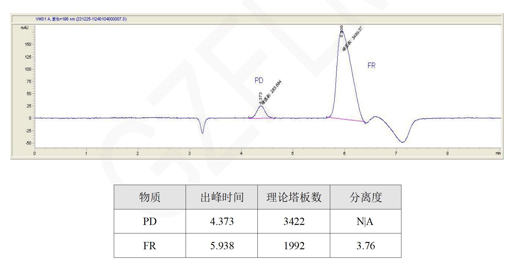 App ID: FLM-B240001 D-吖啶-2-羧酸異構(gòu)體分離 方法:自訂 色譜柱:Chiral AAOA 5u 250*4.6mm(貨號:FMG-AAOA-EONU ) 流動相: 2mM 硫酸銅:IPA=95:5 流速:1ml/min 進(jìn)樣體積:10 μL 檢測波長:196 nm 柱溫:25℃ ![]() |